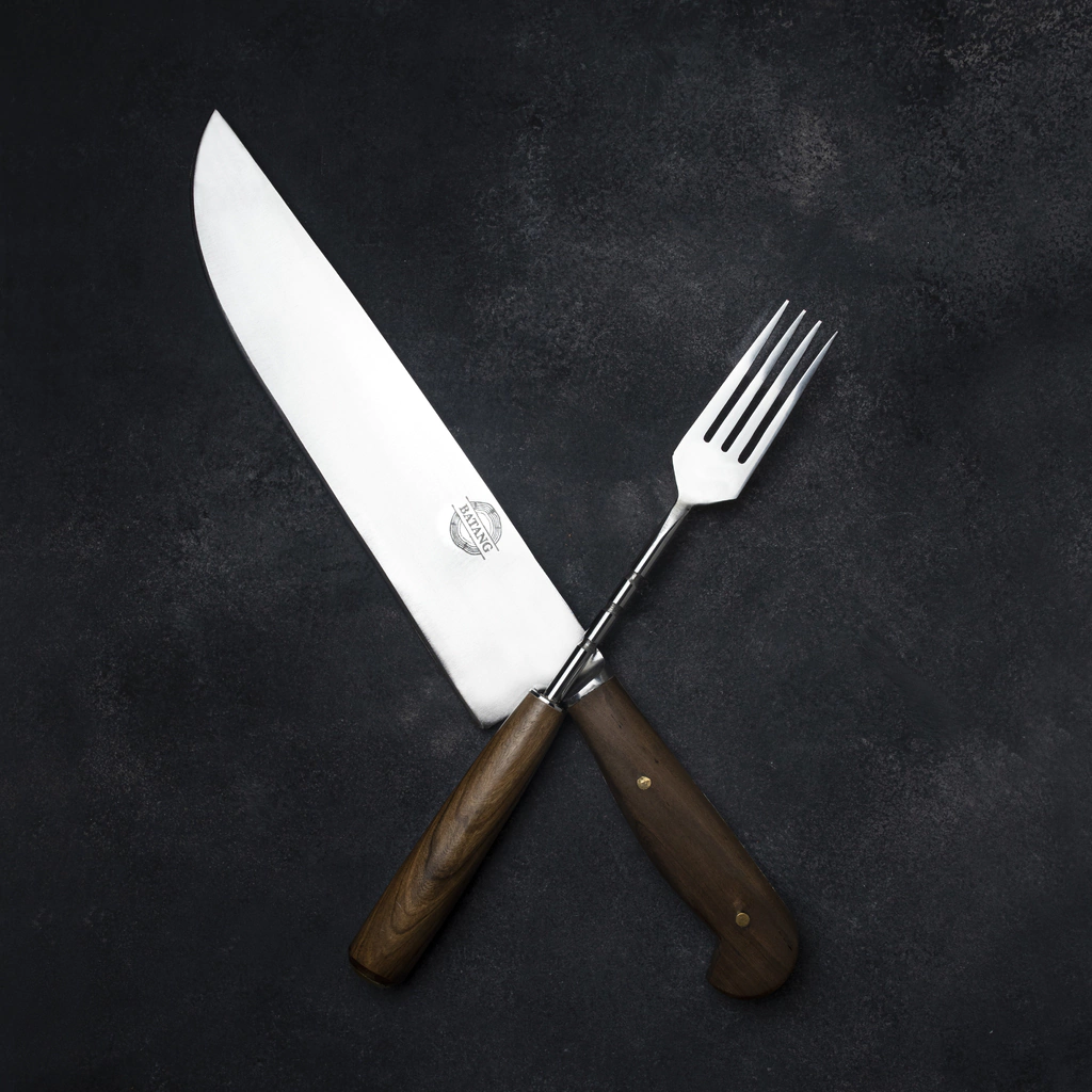 Set de Utensilios: Incluye un atizador, pinza y cepillo para que cada asado sea una experiencia única y placentera. Además, el set de cuchillo y tenedor SUKI está elaborado con una hoja de acero al carbono de 31 cm y un tenedor de acero inoxidable, garantizando durabilidad y un corte perfecto.