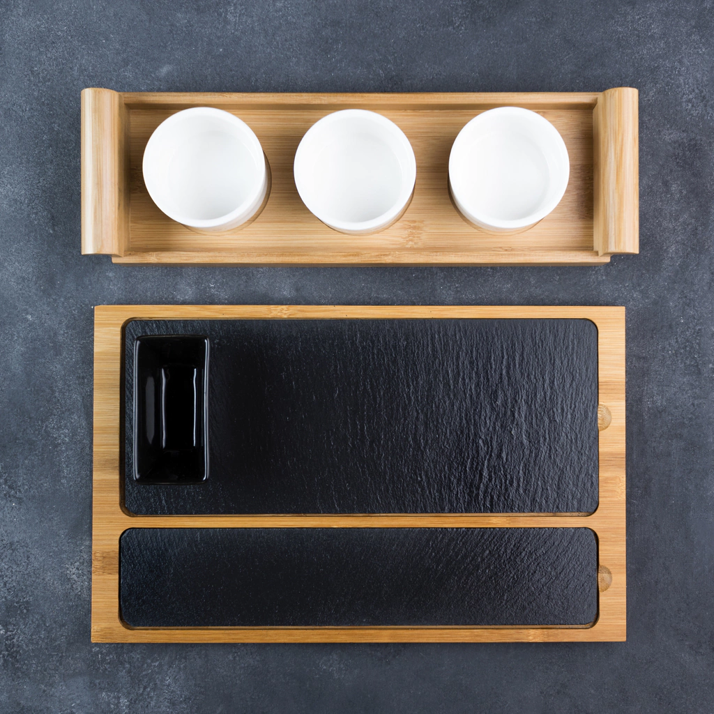 Incluye 2 lajas desmontables refractarias, aptas para horno y parrilla, y una deliciosa bandeja con dips para complementar tus platos.
